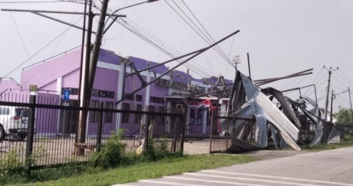 “Atap gedung terbang hingga nyaris ke sisi jalan raya Syech Nawawi Al- Bantani. Beruntung sebagian masih menyangkut di kabel dan tiang listrik, jadi tak menimbulkan korban atau menimpa warga atau pengguna jalan yang melintas,” ungkapnya