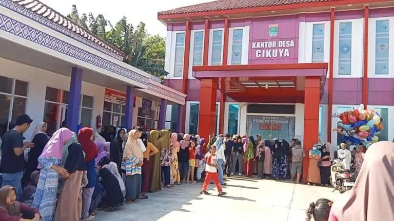 Kegiatan tersebut dilaksanakan di halaman Kantor Desa Cikuya, Kecamatan Solear, Kabupaten Tangerang, pada Senin (16/3/2026). Sejak pagi, ribuan warga tampak antusias memadati lokasi untuk menerima bantuan.