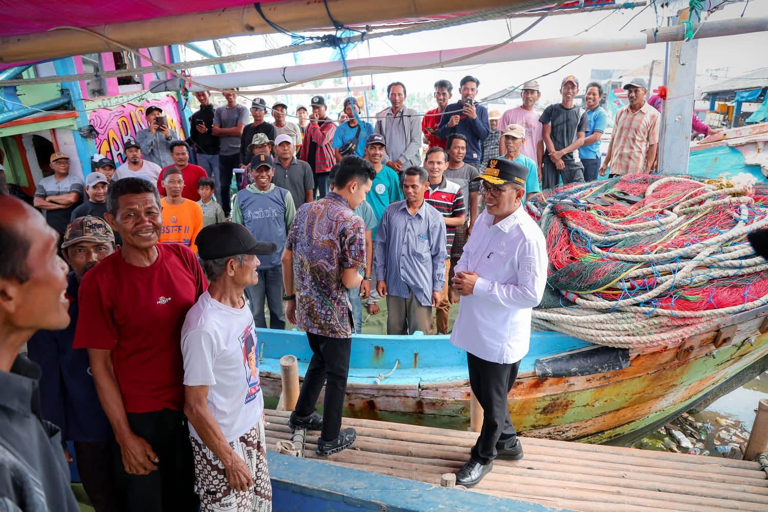 Hal ini disampaikan Gubernur H. Andra Soni ketika berdialog langsung dengan Ketua Himpunan Nelayan Seluruh Indonesia (HNSI) Kabupaten Tangerang, H. Abudin serta merespon keinginan para nelayan Kronjo.