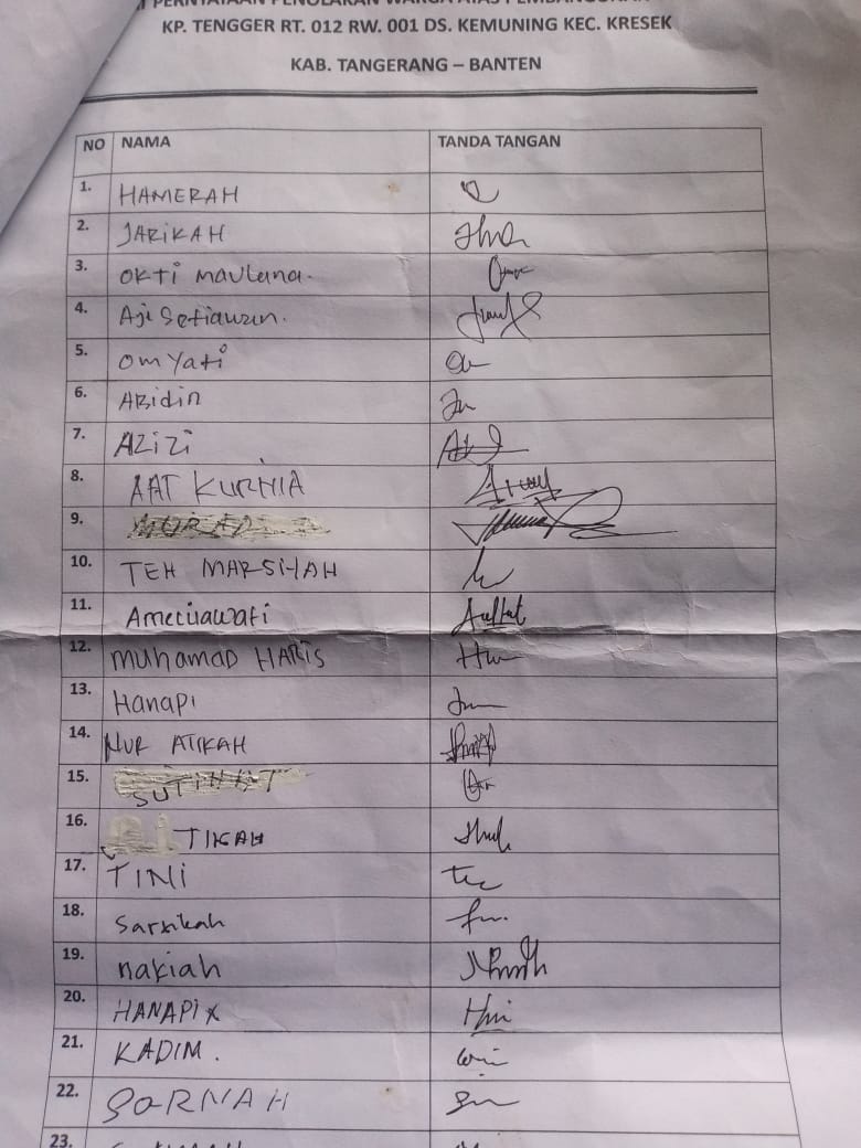 KABUPATEN TANGERANG – Gelombang protes penolakan warga Kampung Tenger, RT. 012/01 Desa Kemuning Kecamatan Kresek akibat adanya pembangunan Tower perangkat telekomunikasi Base Transceiver Station (BTS) oleh salah provaider ternama