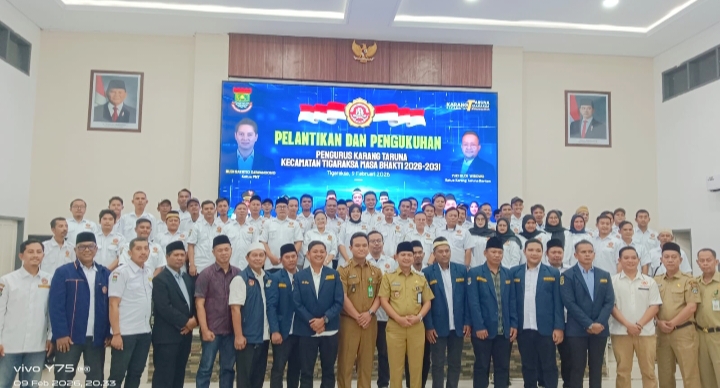 TANGERANGDALAMBERITA.ID | TANGERANG — Pengurus Karang Taruna Kecamatan Tigaraksa periode 2026–2031 resmi dilantik dan dikukuhkan oleh Camat Tigaraksa di Gedung Serba Guna, Senin malam (9/2/2026).