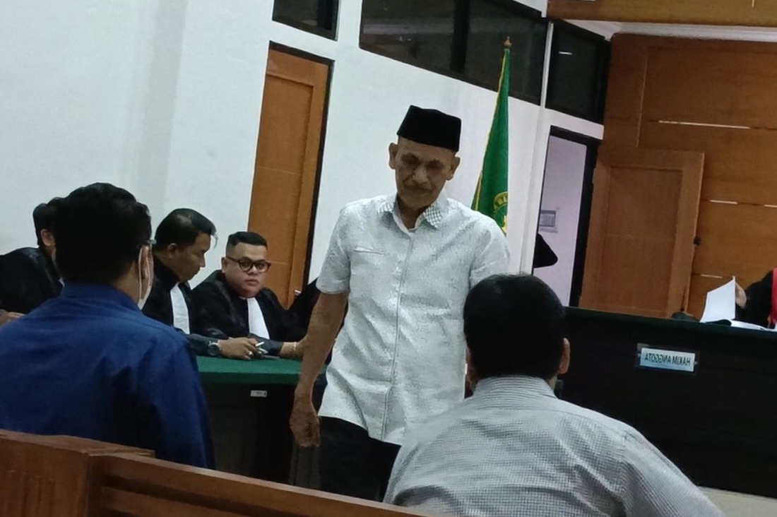 Bahkan sejak pukul 09.30 WIB, Arsin sudah terlihat hadir dan duduk di kursi terdakwa pada ruang sidang utama. Tampak Arsin juga tak sendiri, dirinya bersama 3 terdakwa lainnya memakai masker dan rompi berwarna pink bertuliskan Tahanan Kejaksaan dan menunggu sidang dimulai.