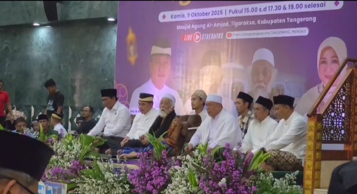 KABUPATEN TANGERANG – Riibuan masyarakat padati Masjid Al-Amjad di Pusat Pemerintahan Kabupaten Tangerang, guna bersama – sama memanjatkan do’a, berdzikir dan bershalawat bersama salah satu ulama karismatik asal Banten, yaitu Ahmad Muhtadi Bin Dimyathi al-Bantani atau lebih dikenal dengah Abuya Muhtadi (09/10/2025).