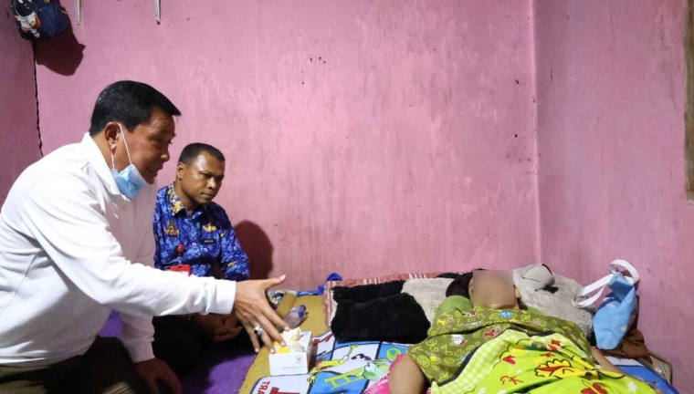 KABUPATEN TANGERANG – Bupati Tangerang, Drs. H. Moch. Maesyal Rasyid mengunjungi seorang warga Desa Blimbing, Kecamatan Kosambi, Kabupaten Tangerang, yang tengah menderita kanker payudara